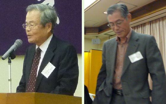 4期8年にわたり当会の発展に尽力をされた上林武夫会長(山脈10回)が辞任された。あわせ、鈴木亮介副会長(山脈11回)も辞任。 新会長には、岡田俊一(山脈12期)が就任。新たに副会長に南部真知子(山脈22回)が加わる。他の副会長は次の通りで留任。 水野克子(山脈18回)、本郷恵子(山脈19回)、中原修一(山脈20回)。 会計幹事 横山毅(山脈23回)。 顧問、野田幸生(山脈4回)、上林武夫(山脈10回) 【総会で辞任の挨拶を行う上林さんと鈴木さん】