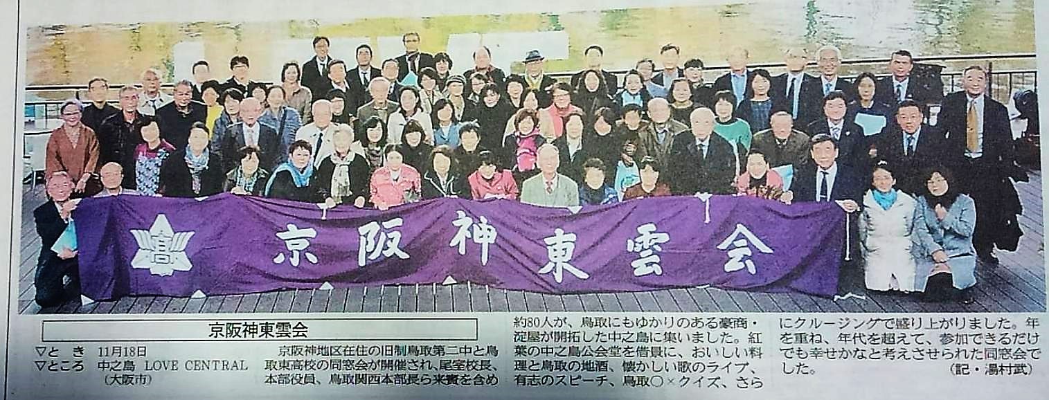 京阪神東雲会総会・懇親会(2017年11月)の写真が日本海新聞(2018年1月25日付)に掲載されました。