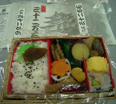 夕食時なので、いつもアベ鳥取堂の郷土色豊かな弁当を頂きました。今回は「32万石」という仕出し弁当風で入れ物がレトロ。